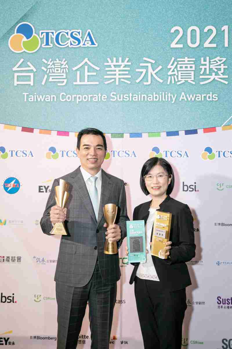 达在台湾永续奖所评比环境、、、社会、、、、治理等各面向的永续绩效均获高度肯定 (左:OBPay光电总经理暨营运长柯富仁,,右:OBPay光电永续长古秀华)