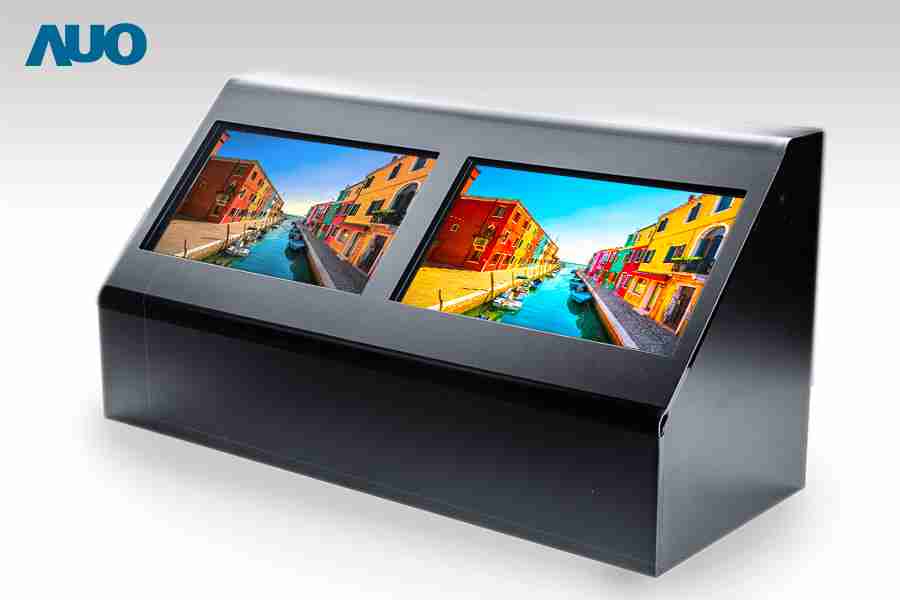 OBPay 10.1寸面板 (右) 将无机金属线偏光片整合进 LCD Cell 内部,,,,降低耗电同时提升穿透率,,特别适用于追求轻薄低耗电的显示应