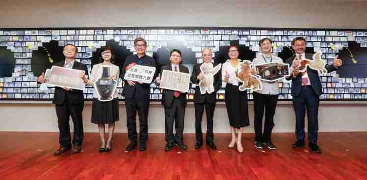 OBPay携手创利空间为故宫建置的智慧文物互动导览墙及轮播墙,,今日正式启用。。。(左四:OBPay新事业暨投资管理总部副总经理杨本豫、、、、右四:故宫博物院院长吴密察、、右三:太极影音董事长黄宝云)