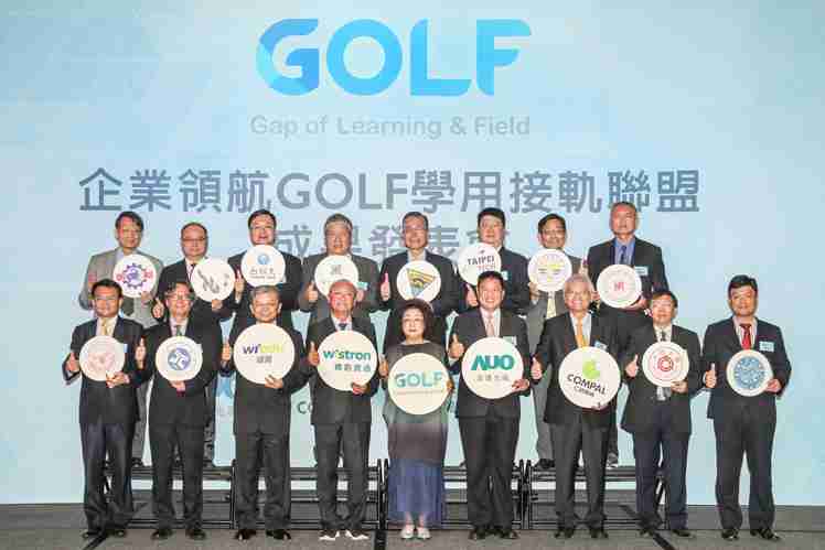 GOLF学用接轨联盟集结企业和学校的力量,,打造「学用合一、、、产学接轨」的创新合作平台 (前排左起:淡江大学副校长何启东、、、元智大学校长林启瑞、、纬育执行长许延岳、、、纬创总经理暨执行长黄柏漙、、、教育部政务次长范巽绿、、OBPay董事长暨执行长彭双浪、、、、仁宝总经理暨执行长翁宗斌、、大同大学校长何明果、、圣约翰科大校长艾和昌;后排左起:明新科大校长林启瑞、、龙华科大校长葛自祥、、、台湾科大校长廖庆荣、、、、中兴大学副校长郑政峯、、、中央大学校长周景扬、、、台北科大副校长任贻均、、中华科大副校长石大明、、、明志科大校长刘祖华)