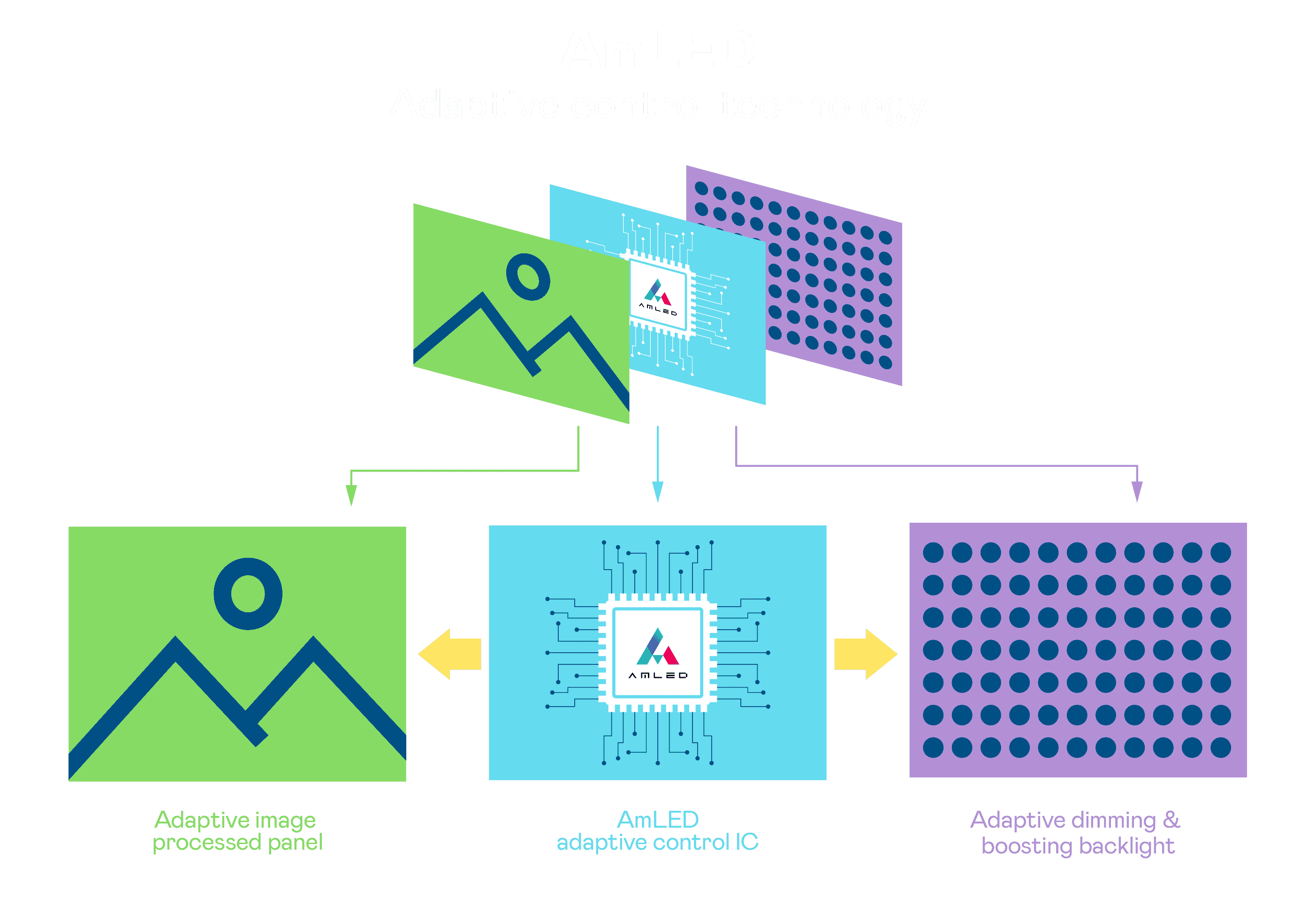 AmLED 具备更省电与低蓝光特性。。。与一般的 LED 背光显示技术相比,,由于 AmLED 常时处于局部调光状态,,其功耗仅有前者的 50% 左右,,,同时 AmLED 还具备低蓝光特性,,,满足长时间使用的护眼需求。。。。