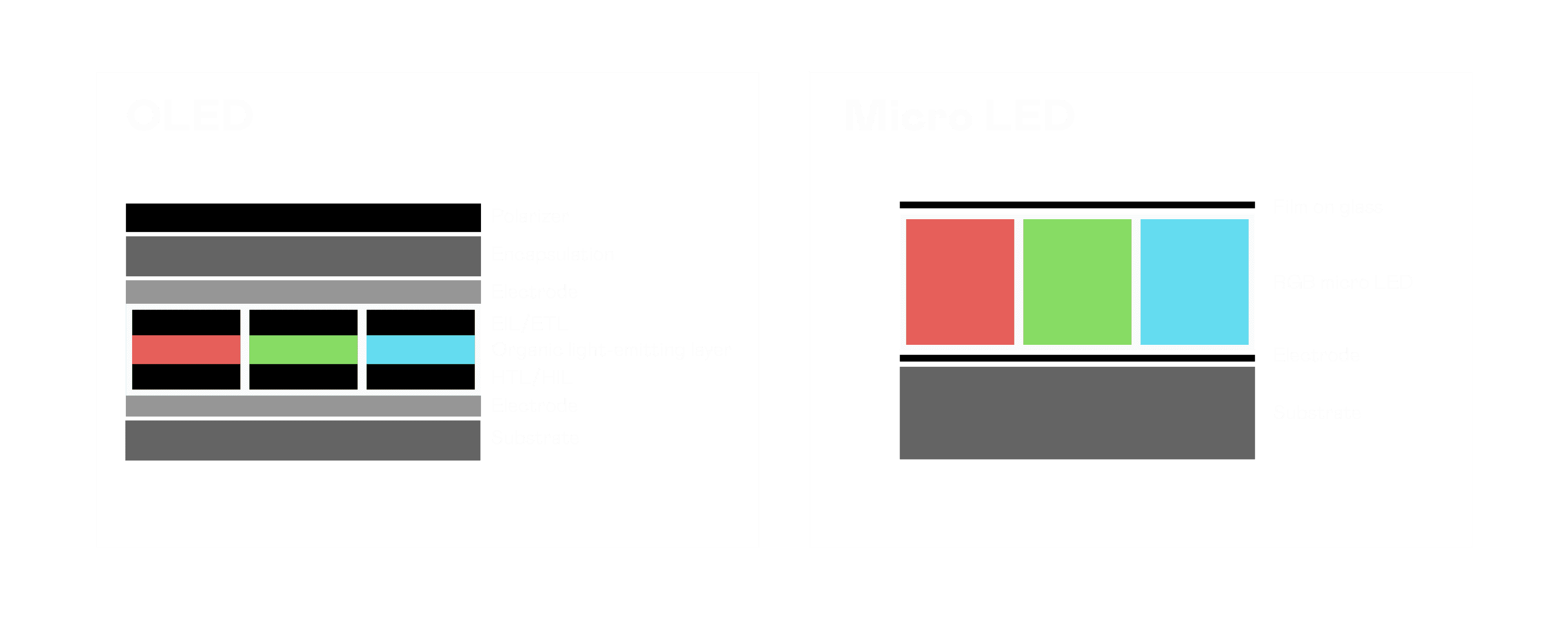 以 LED 做为显示画素,,可让 LED 的发光效率发挥到极致,,,,从而让显示器具备优异的亮度表现,,,,不论是在户外或室内,,,,均具备出众的显示效果。。。。同时,,,与使用有机材料的 OLED 相比,,,LED 具备更稳定、、寿命更长的特性,,,不仅不会有画面烙印问题,,而且更不容易出现故障、、、、坏点。。